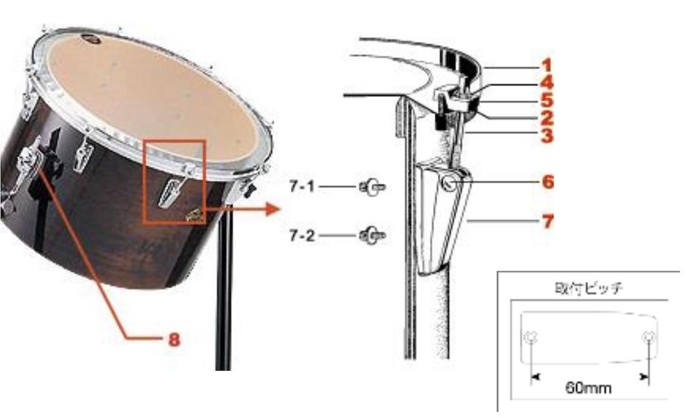 • MS514BK / 取付ネジ(M5x14mm) / TAMA(タマ)/ ドラムパーツ 図中 7-1